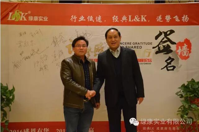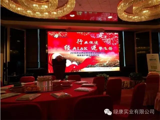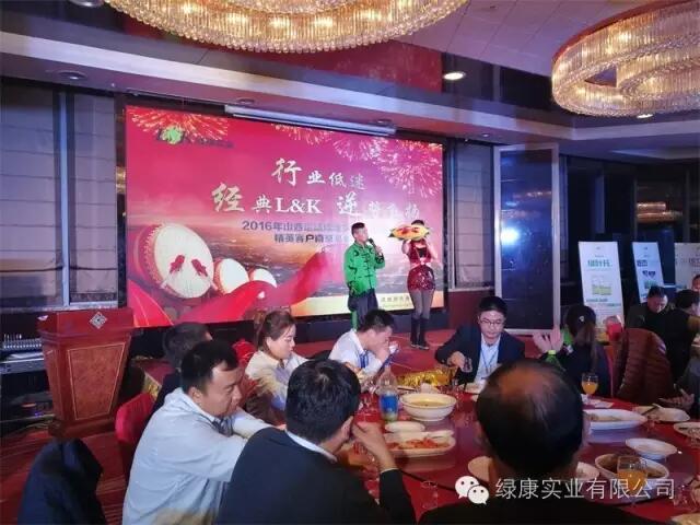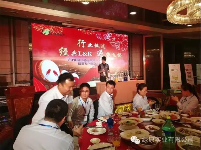 2016年11月23日,山西運(yùn)城綠康實(shí)業(yè)有限公司精英客戶南京高峰論壇,在南京金陵新城飯店隆重舉行,本次會(huì)議邀請了公司七十余名客戶參加,會(huì)議以“行業(yè)低迷,經(jīng)典LK,逆勢飛揚(yáng)”為主題召開,綠康實(shí)業(yè)有限公司董事長王章修、銷售總監(jiān)周小軍參加了本次會(huì)議。